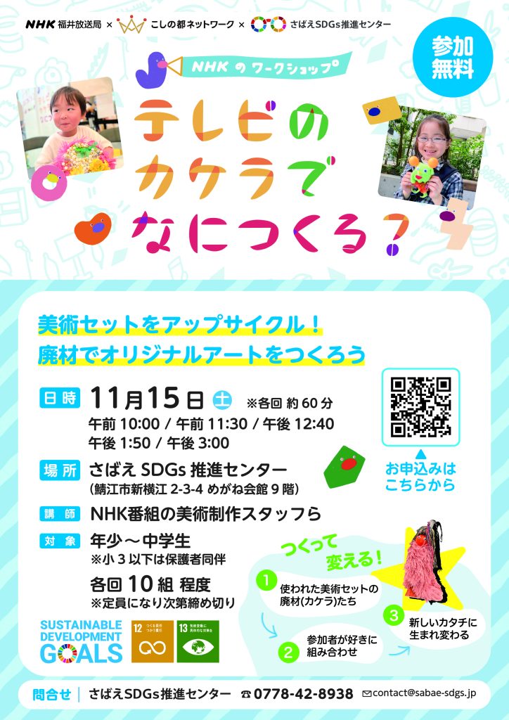 NHKの番組を彩る美術セットの廃材を使ったワークショップを開催。ドラマや歌番組、子ども向け番組の“あのセット”や“こんな小道具”のカケラたちを使って、子どもたちと一緒に世界にひとつのオリジナル作品を作ろう!