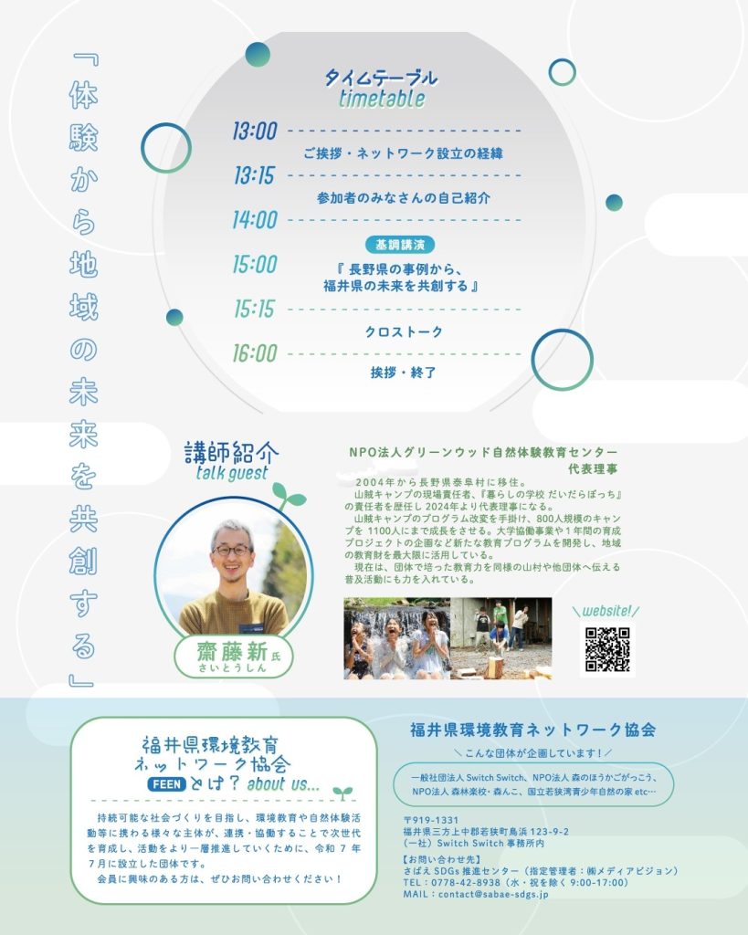 自然体験や環境教育に関わるみなさんが集まり、情報交換やクロストークを交えて交流できるイベントです。福井県の環境教育のこれからを一緒に考えましょう!